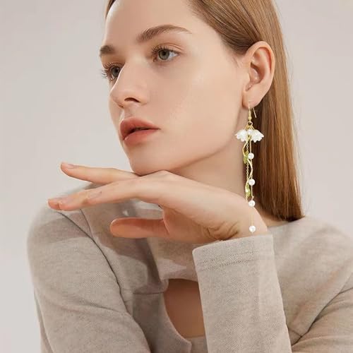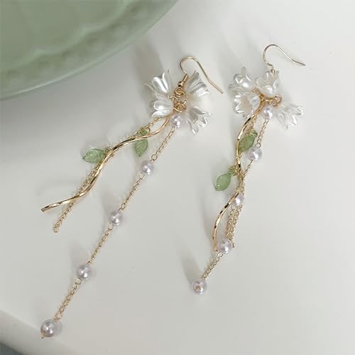 More information about Orchid Flower Dangle Drop Hook Earrings Pearl Crystal Threader Tassel Dangling Wedding Studs Earrings Jewelry for Women