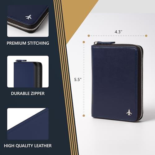 HOT ! Pilot document holder, Pilot wallet, RFID-Blocking, Travel Wallet, Stylish Travel Companion for Aviation Professionals (Real Leather_V2, Blue, Classic)