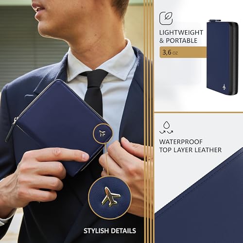 Pilot document holder, Pilot wallet, RFID-Blocking, Travel Wallet, Stylish Travel Companion for Aviation Professionals (Real Leather_V2, Blue, Classic) 5