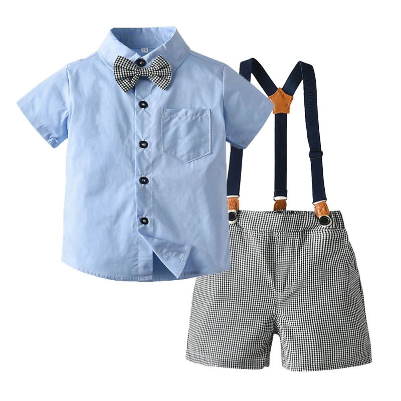More information about 2 Pieces Kids Boys Shirt & Shorts Outfit Solid Color Stripe Short Sleeve Set Casual Fashion Daily Summer Spring 7-13 Years Multicolor White Light Green