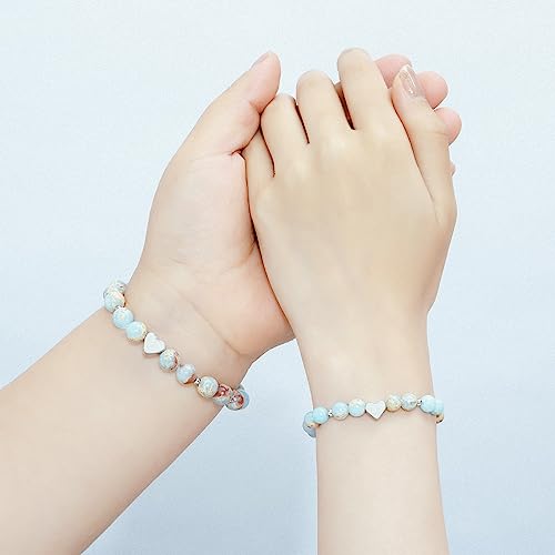 More information about First Day of School 1-5 Grade Mommy and Me Bracelets, Back to School Gifts, Heart Beaded Mom and Daughter Bracelets, Mother Daughter Bracelets Set for 2 One Big and one Small Bracelet