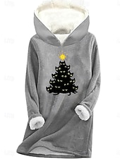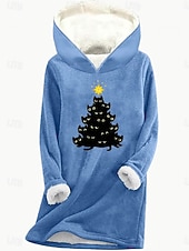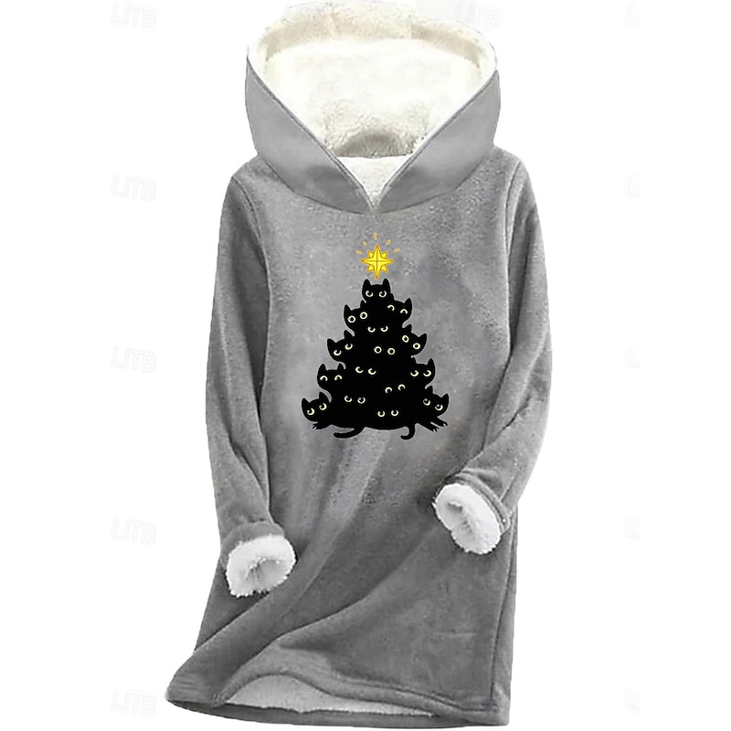 More information about Women's Pullover Hoodie Sweatshirt Graphic Cat Christmas Tree Casual Long Sleeve Hooded Regular Tops Street Dailywear Print Pink Blue Gray Fall Winter