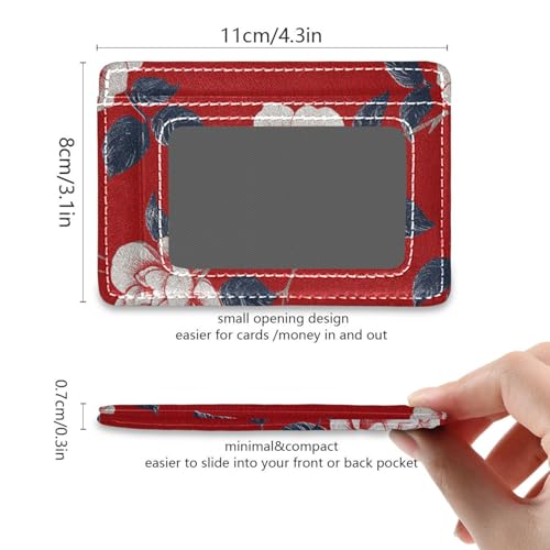 Retro FLOWERs Red Pattern leather slim wallet for men With Cash Slot RFID Blocking wallet inserts for credit cards for men&women 1