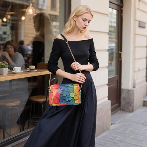 Why Choose Women Crossbody Bag Shoulder Handbag Cellphone Purse PU Leather Metal Chain Strap Water Resistant Zipper Closure Rainbow Feathers Print?