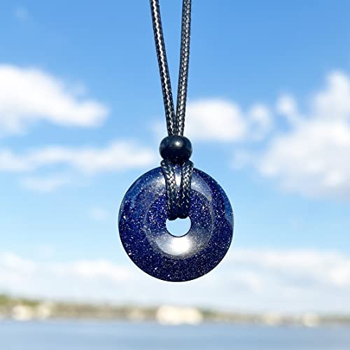• 🏵️ CLASSIC LUCKY DONUT – The Blue Goldstone stone is an ancient symbol of good luck, protection, and power because it represents the cycle of life and rebirth.Blue Goldstone has been hand-carved with professional craftsmanship and inspires curiosity. Wear this Amulet as a reminder to stay positive and feel confident with your inner self.