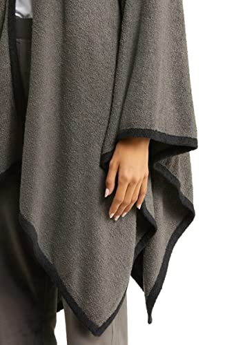 HOT ! Barefoot Dreams CozyChic Lite Bordered Wrap, Long Fine Knit Open Front Cardigans, Lightweight Long Sleeve Winter Clothes, Cocoon Wrap Sweater, Mineral/Black, One Size