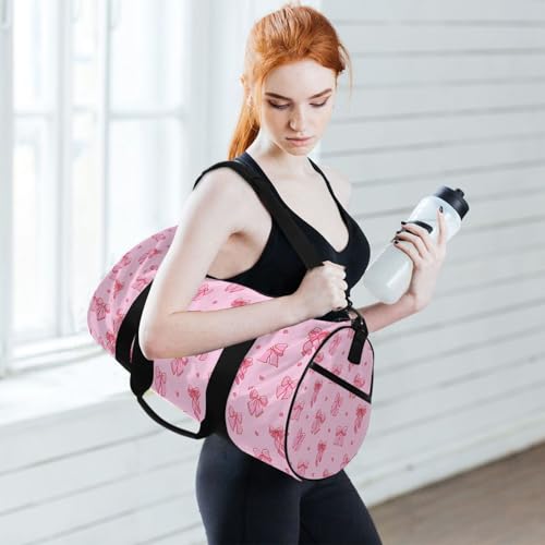 Pink Bows Ribbon Duffel Bags Gym Bag Round Sports Bag Canvas Travel Luggage Overnight Bags for Men Women