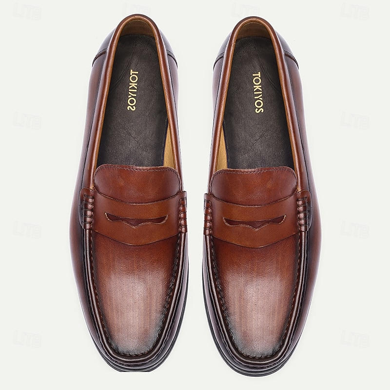 HOT ! Men's Brown Leather Penny Loafers Slip-On Shoes with Classic Moc Toe Design, Business Formal Dress Style for Office Professionals and Wedding Occasions
