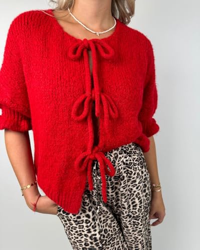 • Sweet Design: Trendy bow tie front sweater jacket for teen grils, ruffle long sleeve bow tie front cardigan knitwear, solid color crew neck cropped length loose knitted cardigans, soft warm sweater for women fall winter clothes, make you more charming