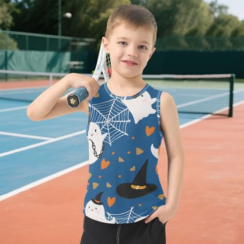 Bolaz Boys Athletic Quick Dry Tank Top Sleeveless Workout T Shirts Age 11-15,Ghost Hat Spider Web Pattern 4