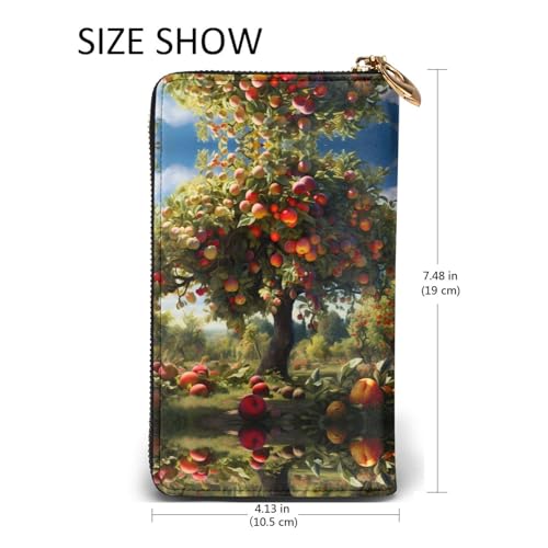 HOT ! Stylish Harvest fruit trees Printing Leather Wallet - Long Clutch for Women, RDurable Material, 12 Card Slots, Zipper Compartments