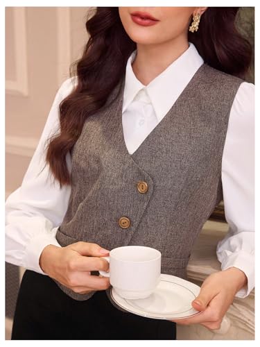 MakeMeChic Women's Button Down V Neck Suit Vest Sleeveless Slim Fit Business Waistcoat 6