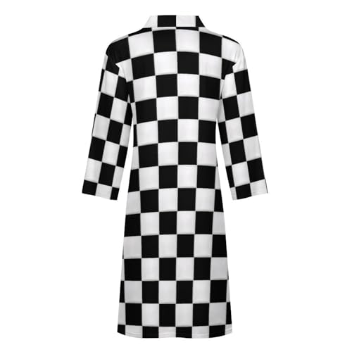 HOT ! Black And White Checkered print Bathrobe Soft And Comfortable Bathrobe Skin-Friendly And Breathable