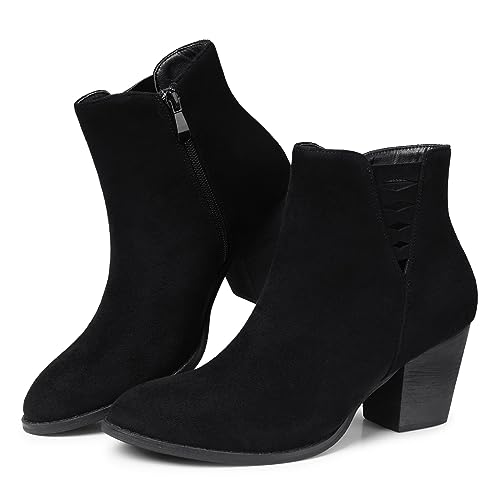 • Size & Color: Women's ankle boots with heel are available in sizes 5-12. Please refer to TEMOFON size to choose your own size. Women black ankle boots, brown dressy boots, camel block chunky boots, grey suede booties.