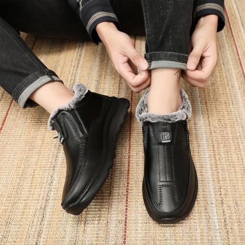 Men's Winter Fleece Waterproof Warm Snow Ankle Boots Zipper Closure Comfortable Fur Lined Lightweight Non-Slip Slip On Outdoor Winter Walking Shoes 6