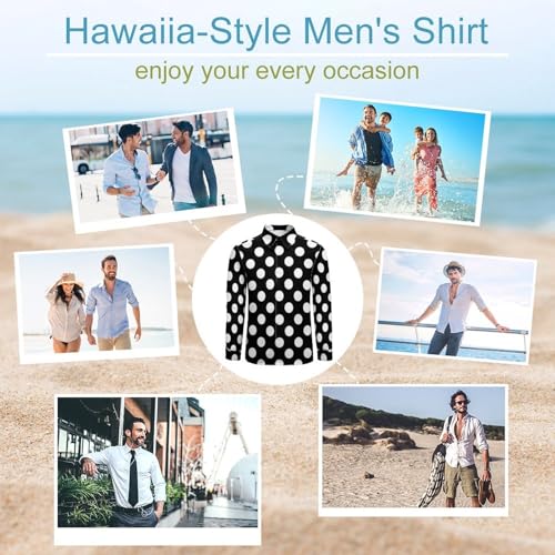 • Premium Material: This Black White Polka Dots Print long sleeve shirts for men is crafted from 100% polyester, offering a soft, comfortable, and lightweight feel. The fabric is designed to ensure comfort throughout the day, making it ideal for various occasions. Perfect for those seeking mens shirts that are both stylish and functional