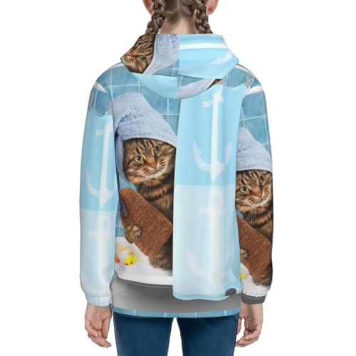 Funny Cat Taking a Bath Kids Pullover Hoodies Boys Zip Up Sweatshirts Girls Athletic Clothes with Pocket 5