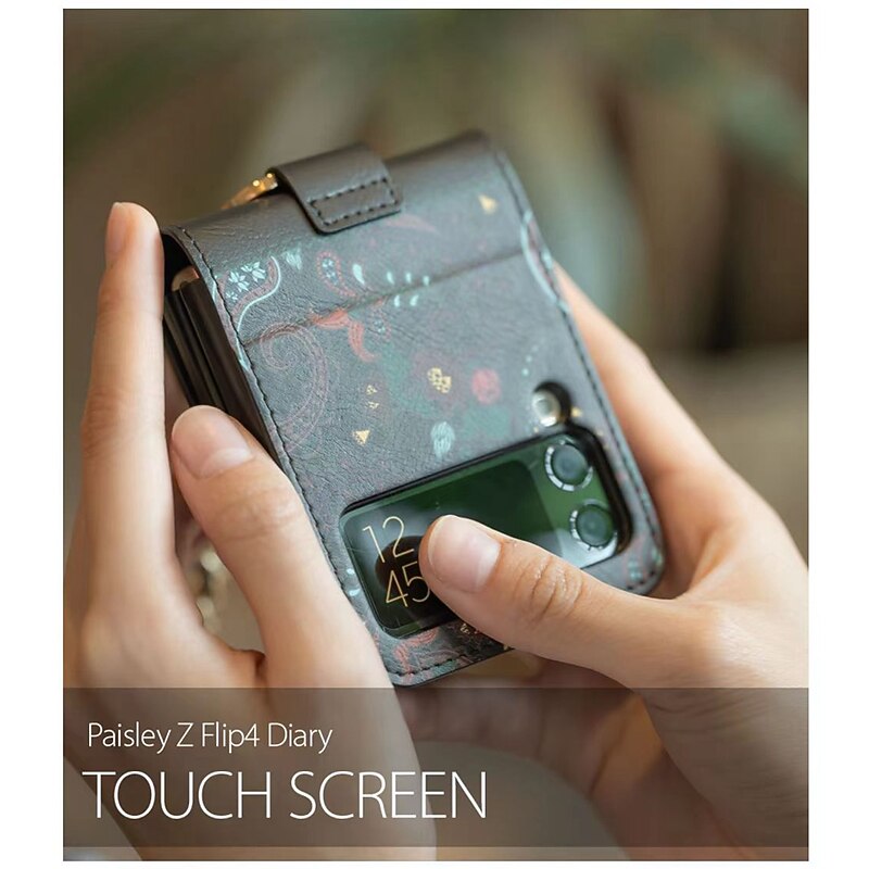 More information about Phone Case For Samsung Galaxy Z Flip 7 Z Flip 6 Z Flip 5 Z Flip 4 Z Flip 3 Wallet Case Magnetic with Wrist Strap Card Slot Retro TPU PU Leather