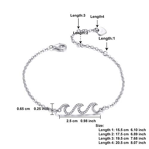 • Adjustable Size: Wave Symbol: 0.98*0.25 in; 6.10 in, 6.89 in, 7.68 inch and 8.07 in four level adjustable sterling silver bracelet to fit different wrist sizes; Perfect for everyday wear and other special occasions, to express your love of the ocean