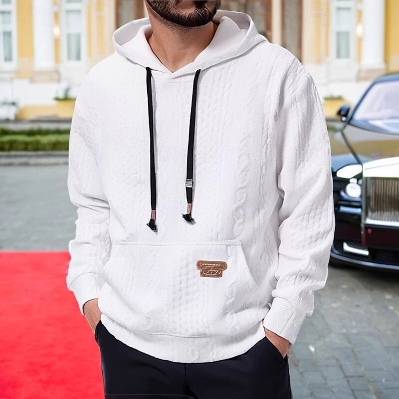 More information about Men's Hoodie Black White Coffee Hooded Plain Jacquard Ribbed Front Pocket Textured Sports & Outdoor Daily Holiday Polyester Textured Streetwear Basic Casual Spring & Fall Clothing Apparel Hoodies