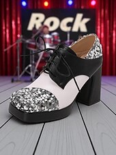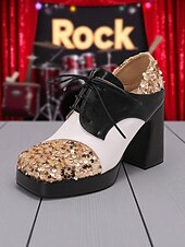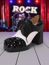 More information about Women's Sequin Oxford Chunky Heel Shoes - 1980s Retro Lace-Up Platform Block Heel Party Pumps for Evening, Cocktail and Dance Wear
