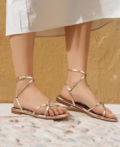 Women's Flat Sandals Strappy Open Round Toe Lace Up Shoes with Adjustable Ankle Strap for Summer 2