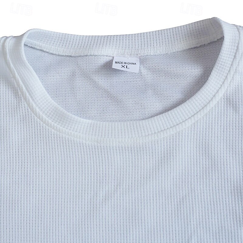 More information about Men's T Shirt Tee Waffle Knit Tee Tee Top Long Sleeve Crew Neck Spring & Fall Plain Fashion Designer Basic Vacation Street Going out Black White Royal Blue Top Tee for Men