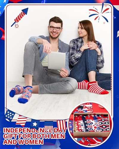 • Suitable Size: these Independence Day socks are about 7.8 x 2 x 3.1 inches, elastic and easy to stretch, not too tight or too loose, can cover your feet and ankles, easy and to put on and take off, suitable for most people, bringing a comfortable wearing experience