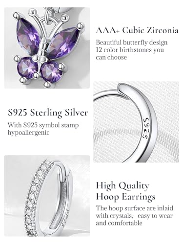 HOT ! SILVERCUTE 925 Sterling Silver Butterfly Earrings - Hypoallergenic Birthstone Earrings for Women, Butterfly Dangle Earring,Dainty Birthday Gifts for Women/Her