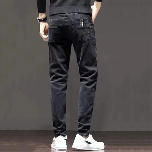 Men's Thicken Narrow Leg Trousers Solid Denim Daily Slim Fit Office Socialite Jeans Pants 4