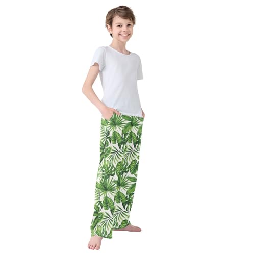 ALAZA Exotic Palm Leaves Green Pajama Pants Long Sleep Pant Pajama Bottoms Elastic Waist with Pockets 1