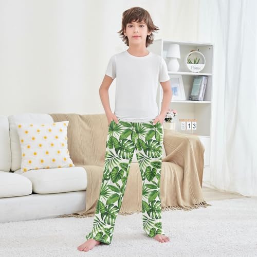 ALAZA Exotic Palm Leaves Green Pajama Pants Long Sleep Pant Pajama Bottoms Elastic Waist with Pockets 2