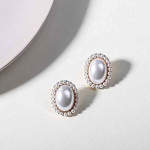 Pearl Clip on Earrings for Women Non Pierced 14K Gold Plated Oval Earrings 6
