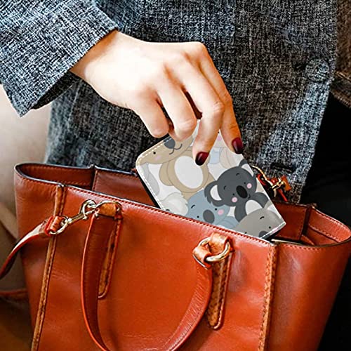 HOT ! Seamless Koala Bear Hand Draw Doodle Cartoon Animals Texture Grey Credit Card Coin wallet, RFID Blocking Compact Women Leather Card Holder, Key Change Organizer, Zipper Purse Clutch Pouch