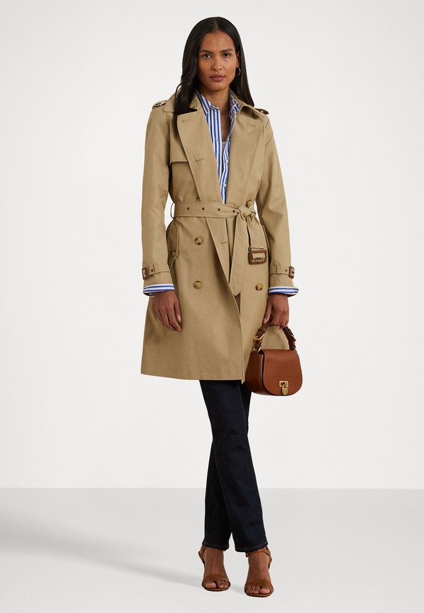 HOT ! DOUBLE BREASTED COTTON BLEND TRENCH COAT - Trenchcoat - birch tan