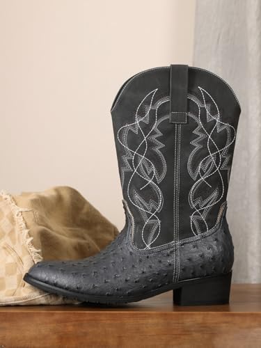 • Advanced design: Real artificial ostrich grain leather structure and complicated western embroidery on the shaft create a real cowboy boot appearance.