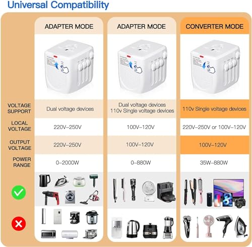 • 230 V TO 120 V CONVERT230 V TO 120 V CONVERTER -- Power converter mode reduces the voltage from 230 / 240 V to 100 / 120 V at 120 V or step down to 120 V for electrical products from 25 - 880 W, with a maximum power of 2000 W at 240 V adapter modeER -- Power converter mode reduces the voltage from 230 / 240 V to 100 / 120 V at 120 V or step down to 120 V for electrical products from 25 - 880 W, with a maximum power of 2000 W at 240 V adapter mode