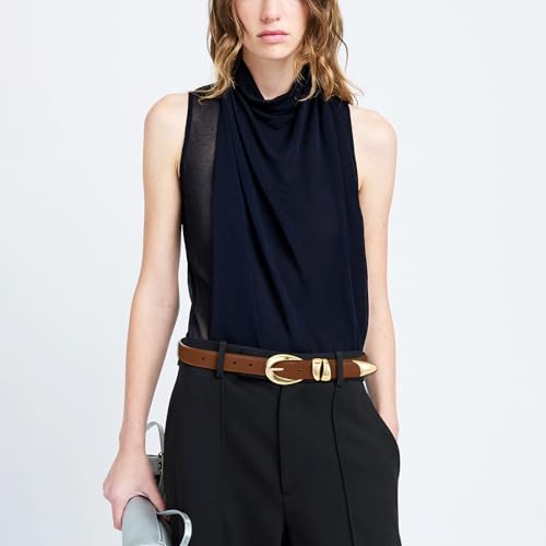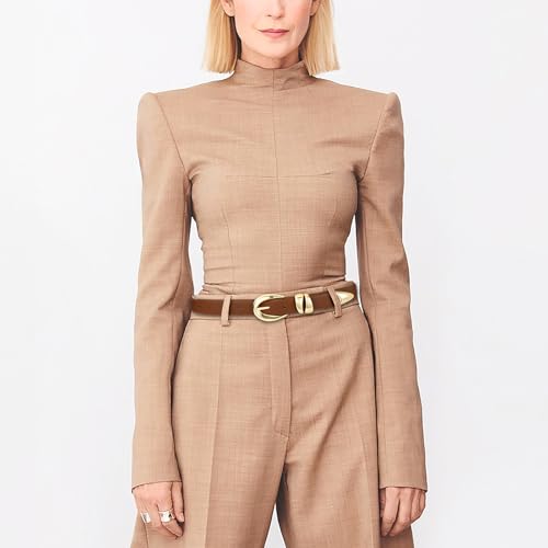 • 【Bold Gold Buckle Design】: The standout feature of this women belt is its thick, gold metal buckle paired with two smooth rings, adding a touch of sophistication and making it a focal point in your outfit.