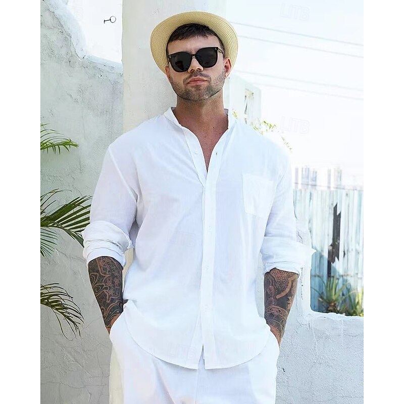 $49.99 - Men's Linen Shirt 2 Piece Shirt Set Summer Shirt Matching Sets Beach Shirt Plain Vacation Casual Black White Blue Khaki Long Sleeve Band Collar Spring & Summer Clothing Apparel 2025. Shop for cheap Men's Basic Shirts Sets online? Buy at lightinthebox.com on sale today!