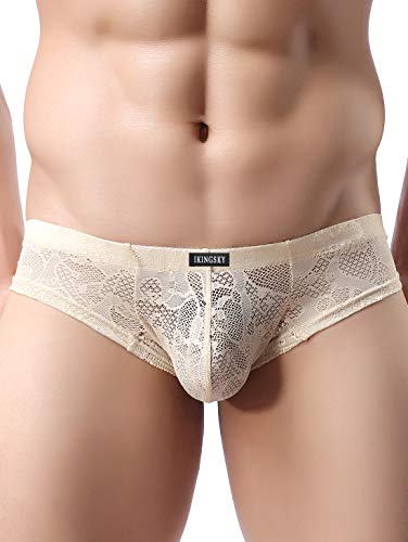 HOT ! iKingsky Men's Cheeky Boxer Briefs Sexy Thong Underwear Breathable Lace Mens Panties