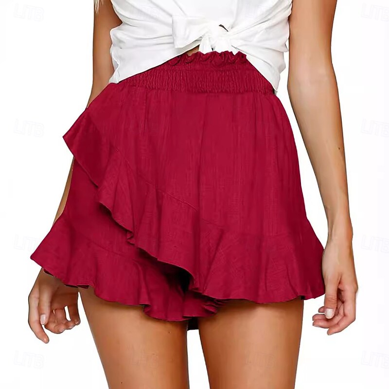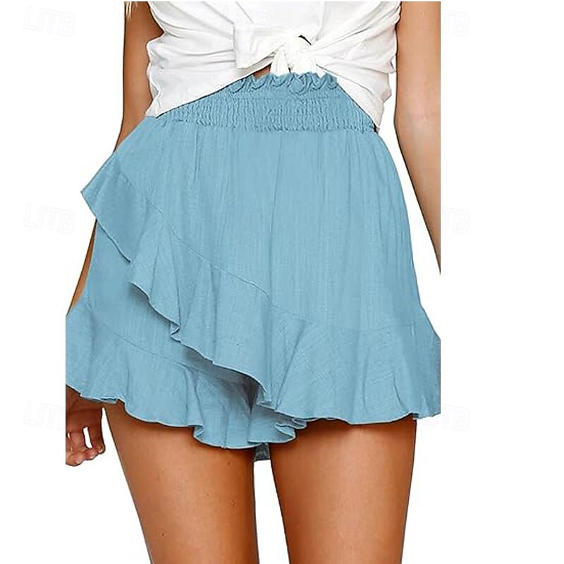 More information about Women's Linen-Inspired Shorts Shorts Slacks Streetwear Casual Short Natural Plain Ruffle Elastic Waist Comfy Breathability Outdoor Outdoor Going out Beach claret Rust Navy Light Sky Blue Summer