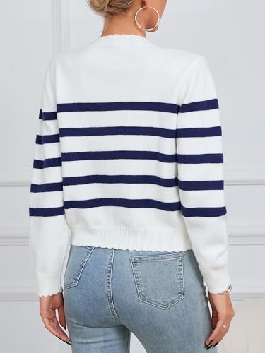 Women's Crew Neck Striped Cardigan Sweater Button Down Sweater 6