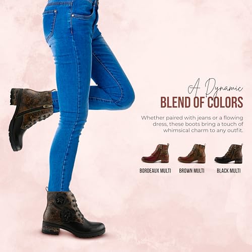 Spring Step L'Artiste Martinela Heeled Booties - Floral Appliqué Leather Ankle Boots with Artistic Touch - Cushioned Insole, Durable Rubber Sole,Women's Footwear 7