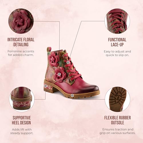 More information about Spring Step L'Artiste Martinela Heeled Booties - Floral Appliqué Leather Ankle Boots with Artistic Touch - Cushioned Insole, Durable Rubber Sole,Women's Footwear