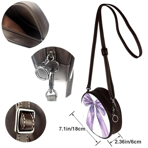 More information about Watercolor Lavender Bow Tied With Tails Women Round Crossbody Bags Leather Sling Bag Purse