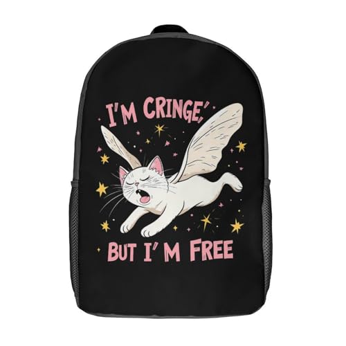 I'm Cringe But I'm Free 17 Inches Travel Backpacks Funny Shoulder Bag Lightweight Daypack 6