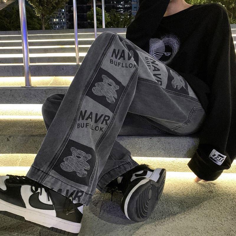 Harajuku Men's Jeans Bear Print Jeans Straight Loose Old Jeans Four Season Commuter Jeans Gothic Jeans 1