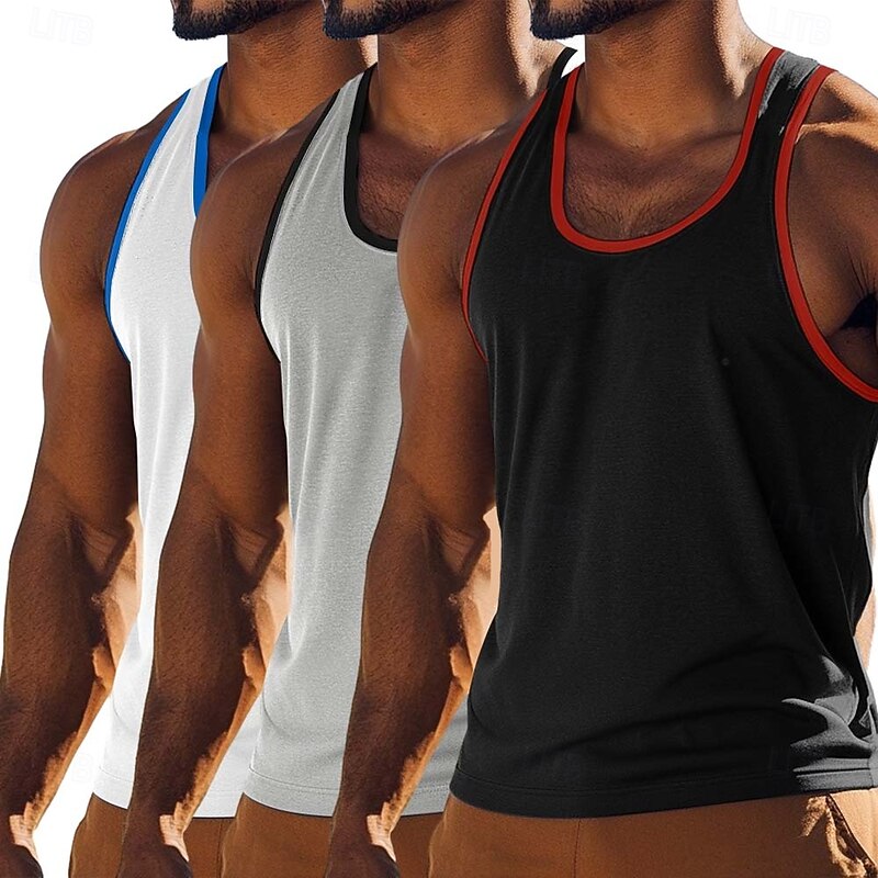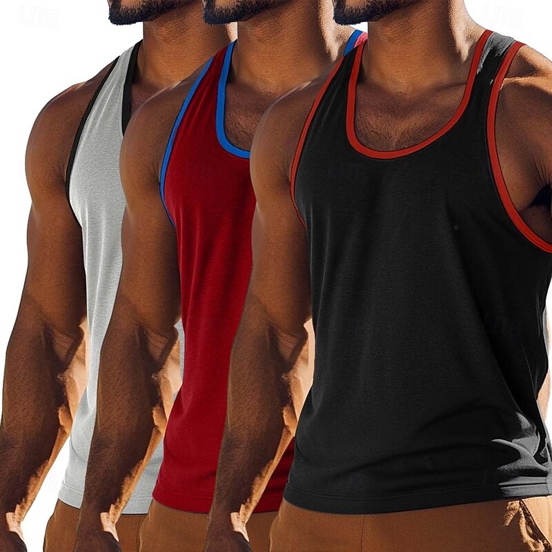 More information about Men's Tank Top Vest Undershirt Sleeveless Shirt Sleeveless U Neck Scoop Neck Summer Solid Color Plain Fashion Sporty Classic 3-Piece Color Block Street Casual Sports Red / Blue / Green