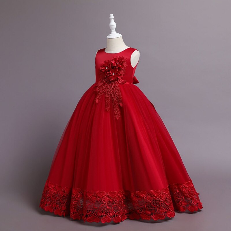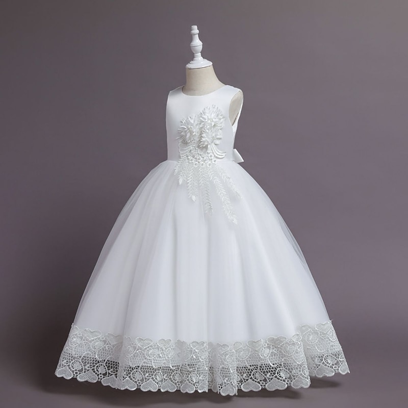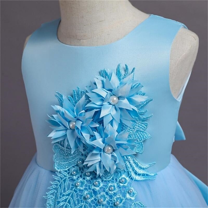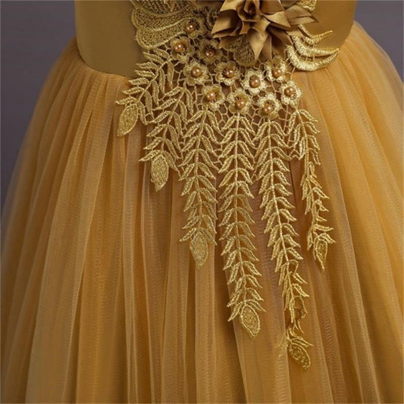 More information about Kids Girls' Flower Girl Dress Dress Flower Sleeveless Wedding Party Patchwork Embroidered Elegant Princess Polyester Maxi Floral Embroidery Dress A Line Dress Summer Spring 4-13 Years White Yellow