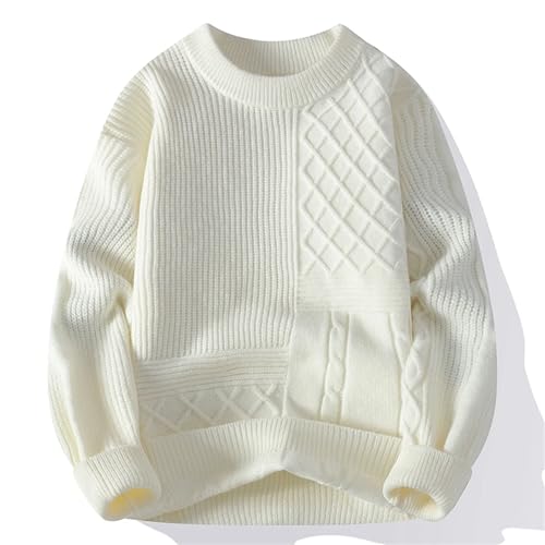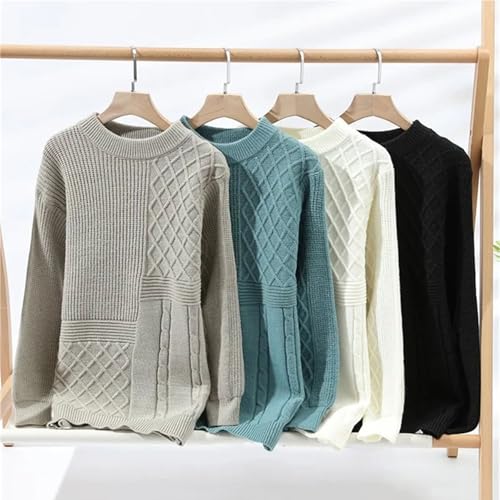 HOT ! Mokkpeq Men's Thickened Warm Fall Winter Sweater Crewneck Long Sleeve Cable Knit Pullovers Loose Fit Solid Color Casual